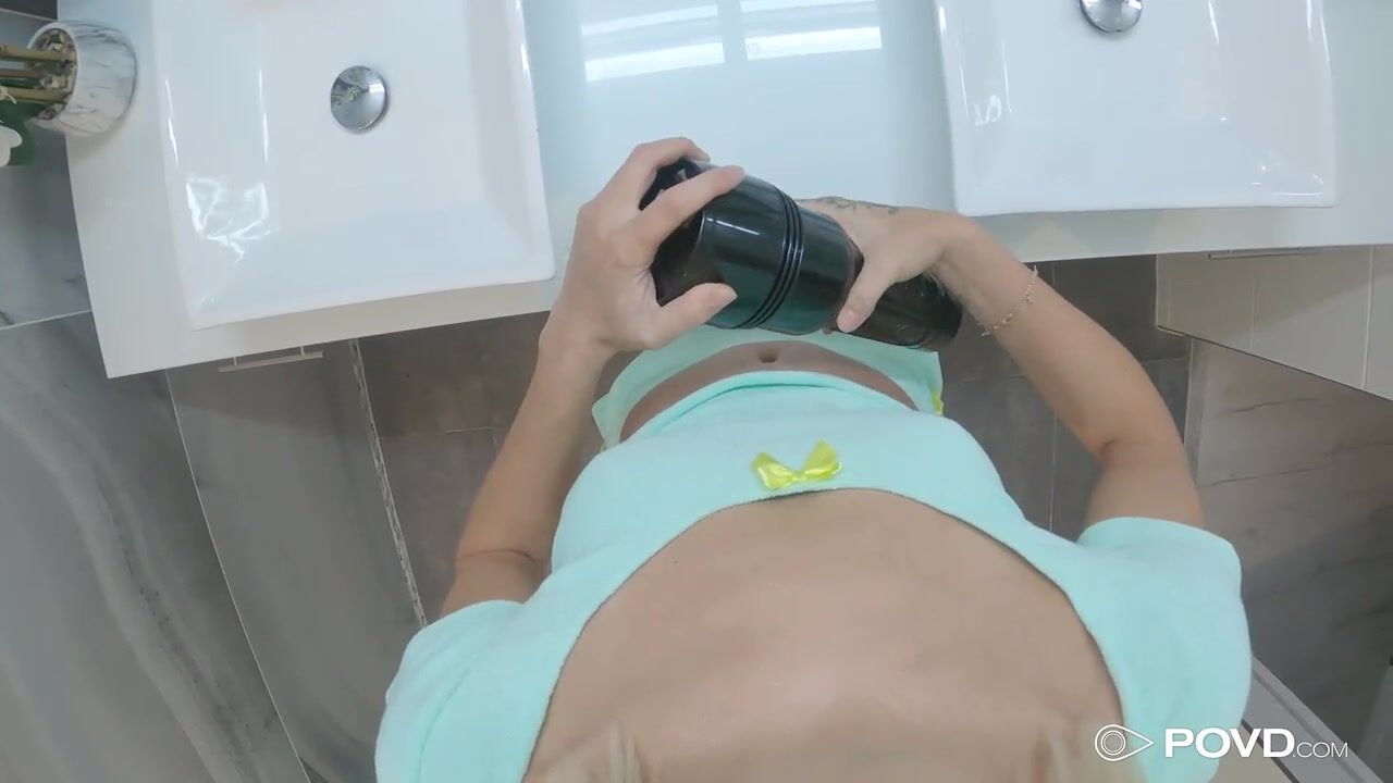 Chloe finds her stepdad’s jerk sleeve and uses it on him.