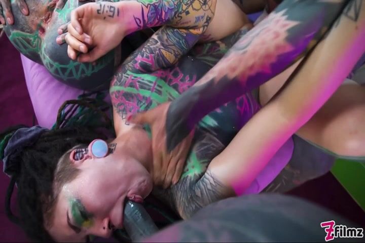 The girls are horny and want to get their holes filled. They start by sucking on the guy’s cocks and immediately have Nikolaz and Lily Lu stuff their dick into their fuck holes. Anuskatzz just has to take it deep inside her ass by Lily, while Illuz has her pussy stuffed. Illuz wants to taste Anuskatzz’s ass juice, so she sucks on Lily’s cock. They switch partners and get some pussy fucking,