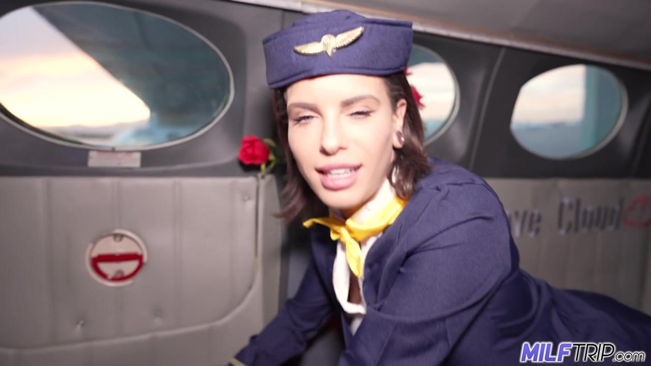 Sex in the sky with horny stewardess Jesse Pony in MILF high club fantasy