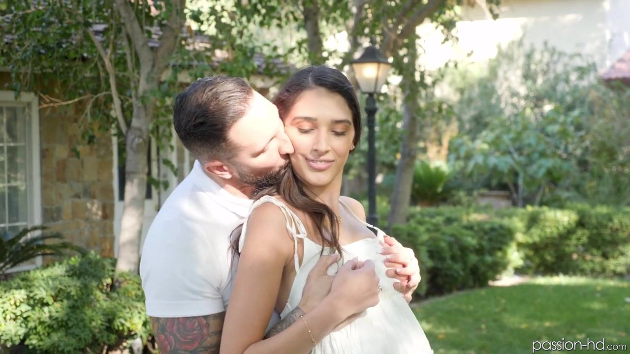 A romantic stroll through the garden gets hot and heavy. Aria starts sucking her man’s cock before going inside to get her pussy pleased and filled with cum.