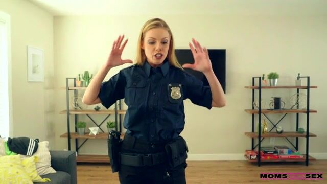 Bigtit cop Britney Amber handcuffs her stepson and bangs him in her hairy pussy to help him cum so he can focus