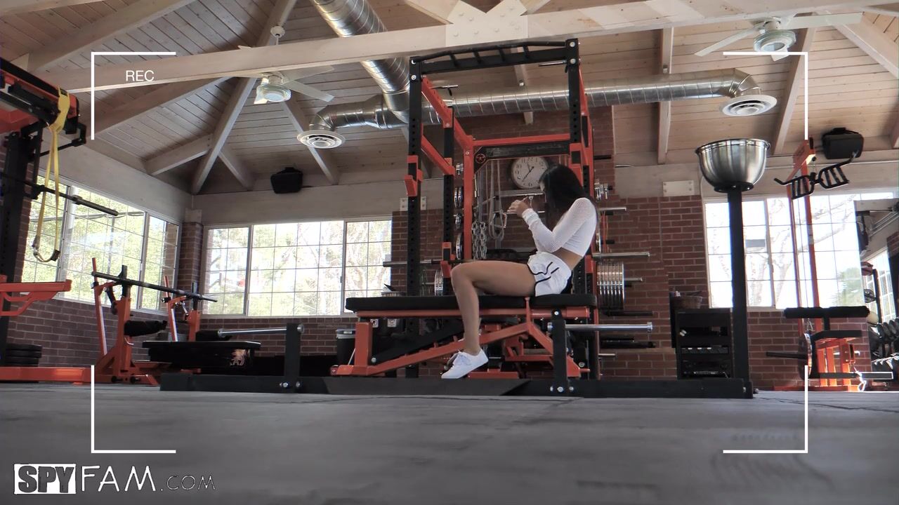Sexy stepsis catches shy little stepbro peeking on her working out. He invites him over to watch...and more.