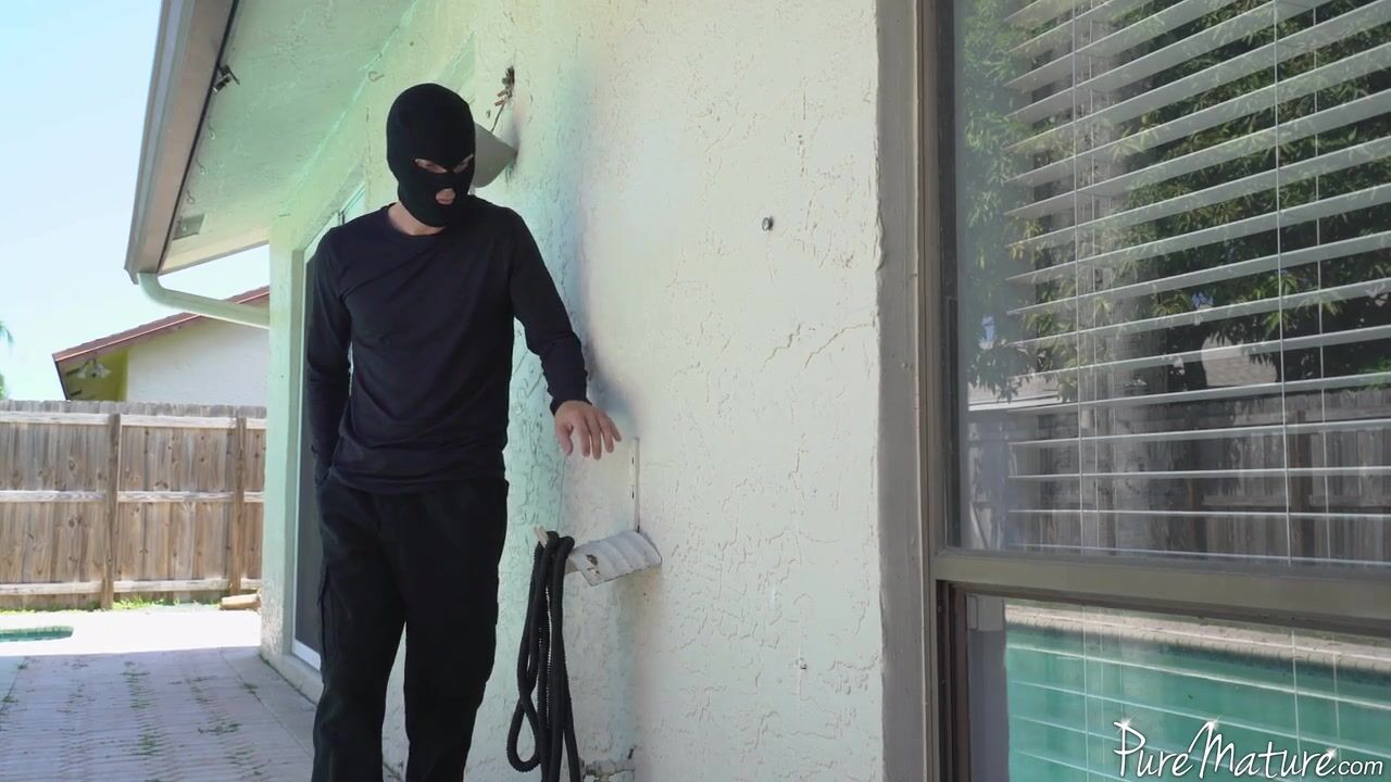 Armani is spied on by a peeping voyeur in a ski mask as she masturbates. She calls in Tyler the security guard to save the day and rewards him with titty fucking and passionate sex.