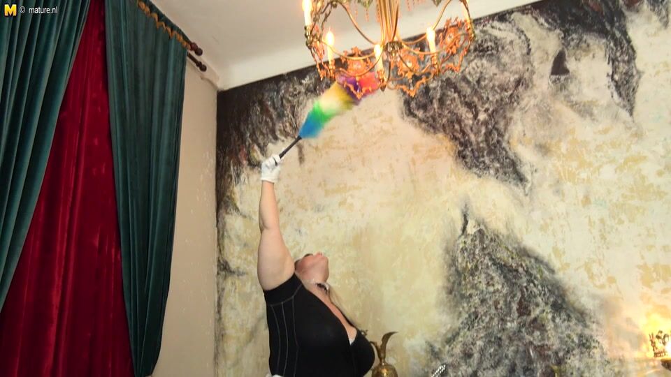 Curvy big breasted BBW housemaid playing with something she found