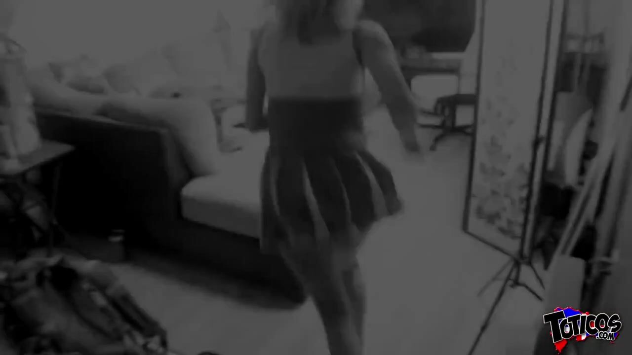 Blonde cheerleader slut stabs mouth and pussy with big black cock
