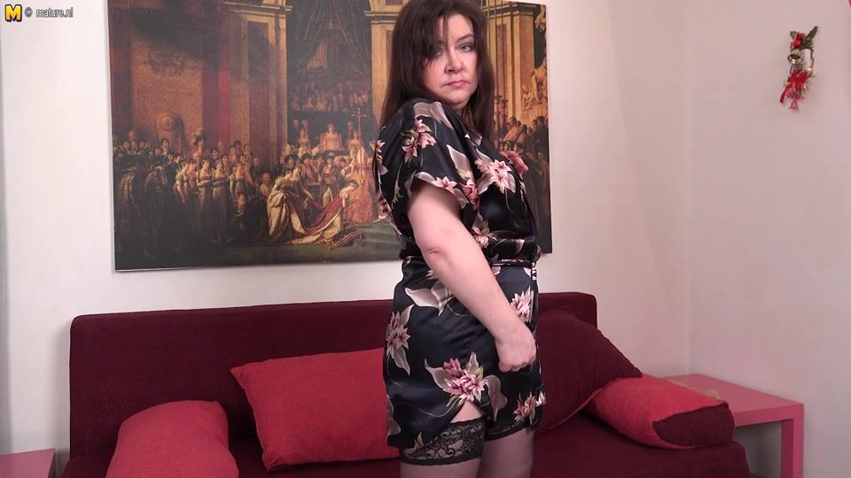 Chubby hairy mature slut playing with her big dildo