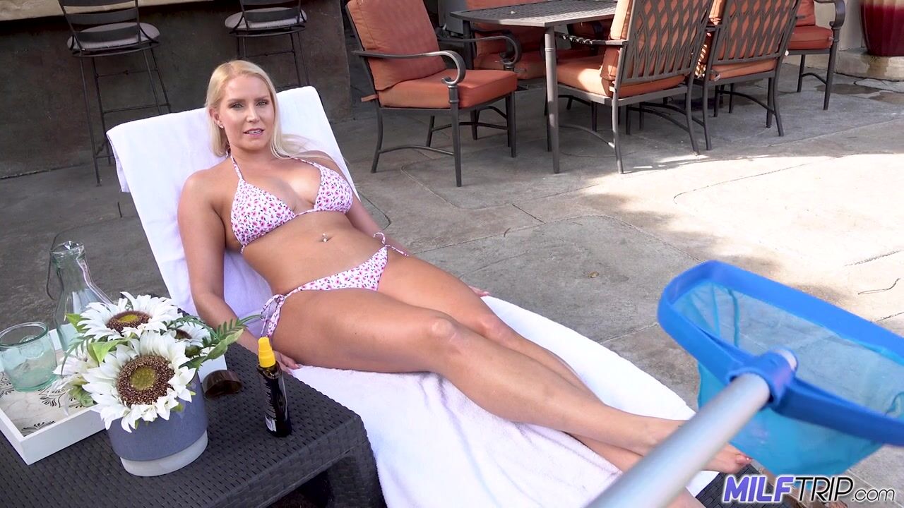 Pool boy finds PAWG MILF naked in string bikini then oils her up